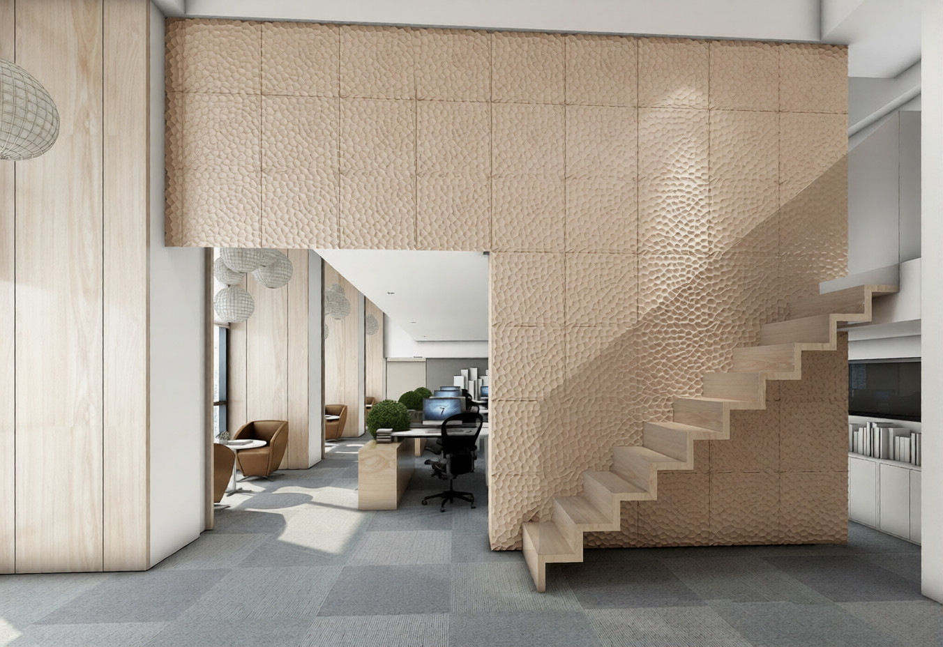 Панели Astro II в бежевом цвете отличаются изящной и ненавязчивой текстурой, создавая спокойный и светлый фон. Они придают пространству уют и естественную теплоту. Подходят для создания расслабляющей атмосферы в жилых и офисных помещениях.
