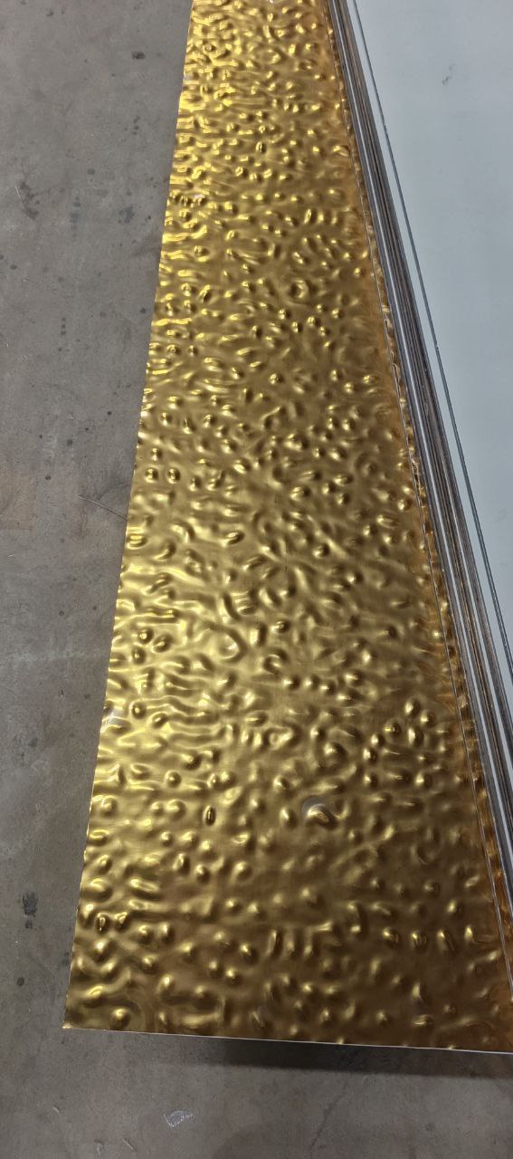 Золотая поверхность хорошо сочетается с черным, графитовым, молочным, белым, бежевым, мрамором, деревом, зеркалами, стеклом и матовыми однотонными материалами.
