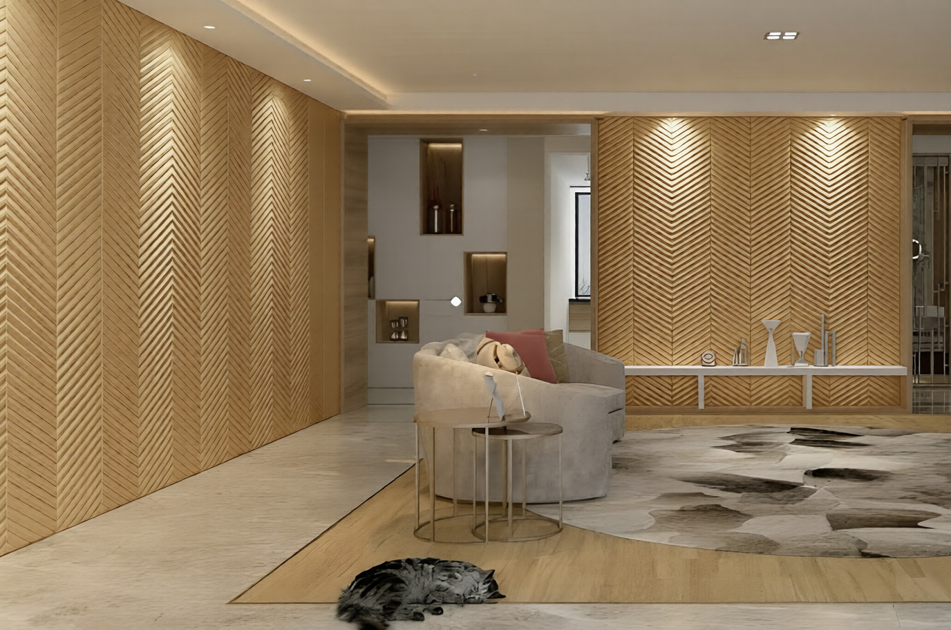 Тканевые панели Harvest в золотом оттенке придают интерьеру теплое сияние и элегантность. Их фактура мягкая и приятная на ощупь, создавая ощущение уюта и роскоши. Идеально подходят для акцентных стен в стильных пространствах.