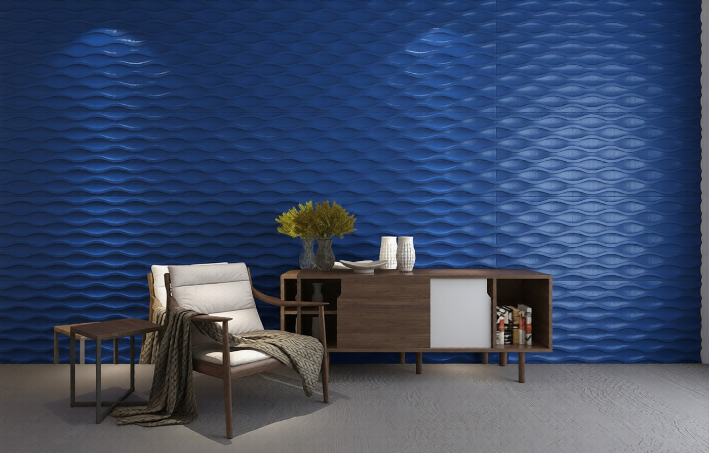 Панели Medusa насыщенного синего цвета выделяются сложной, выразительной текстурой, которая оживляет пространство и добавляет глубину. Они создают атмосферу динамичности и стиля, идеально подходящую для современных интерьеров. Подчеркивают индивидуальность дизайна.