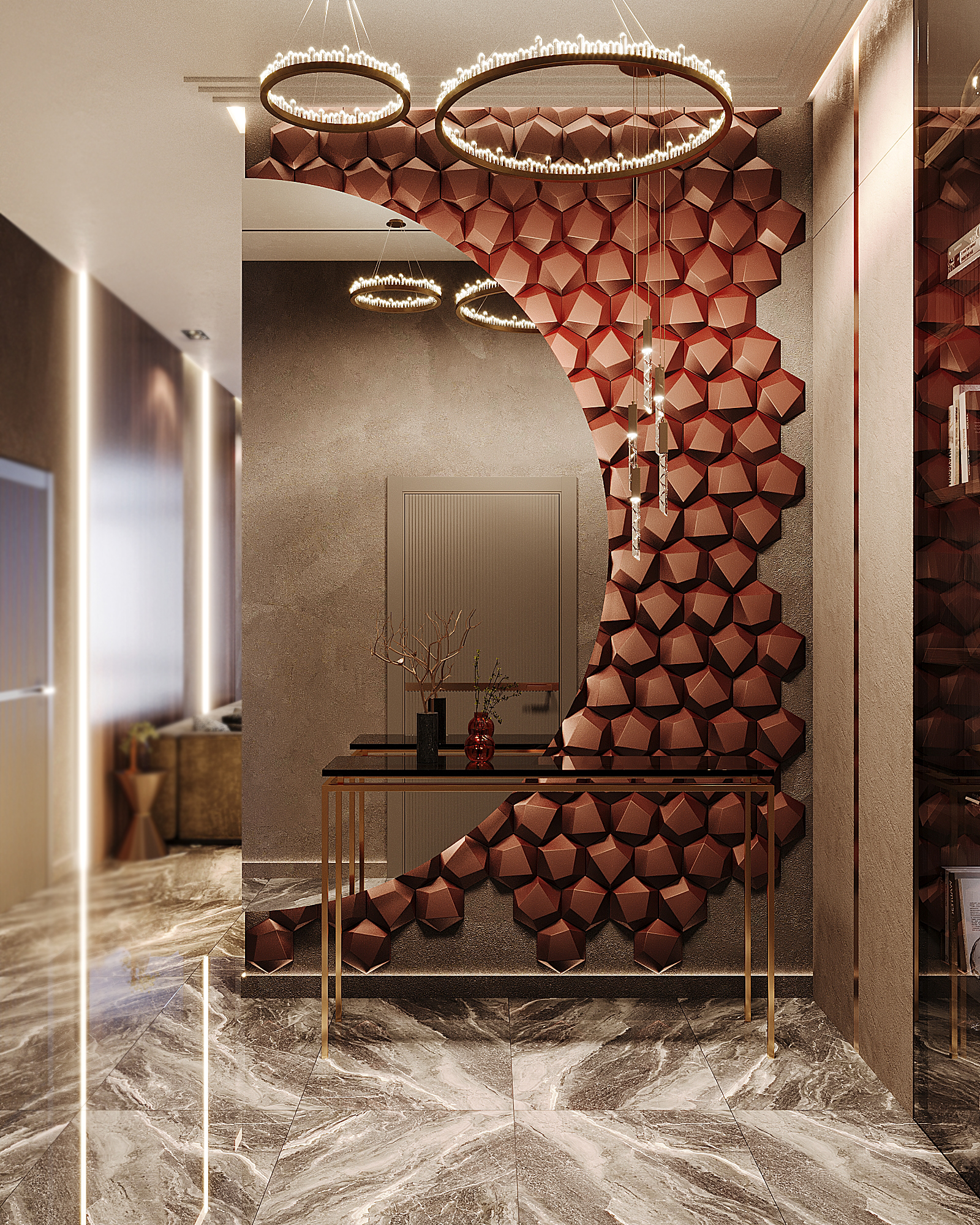 Панели Rocky цвета бронзы обладают выразительной текстурой с металлическим блеском, придавая стенам динамизм и глубину. Они создают атмосферу роскоши и современного индустриального стиля. Отлично подойдут для акцентных стен в лофтах и современных интерьерах.