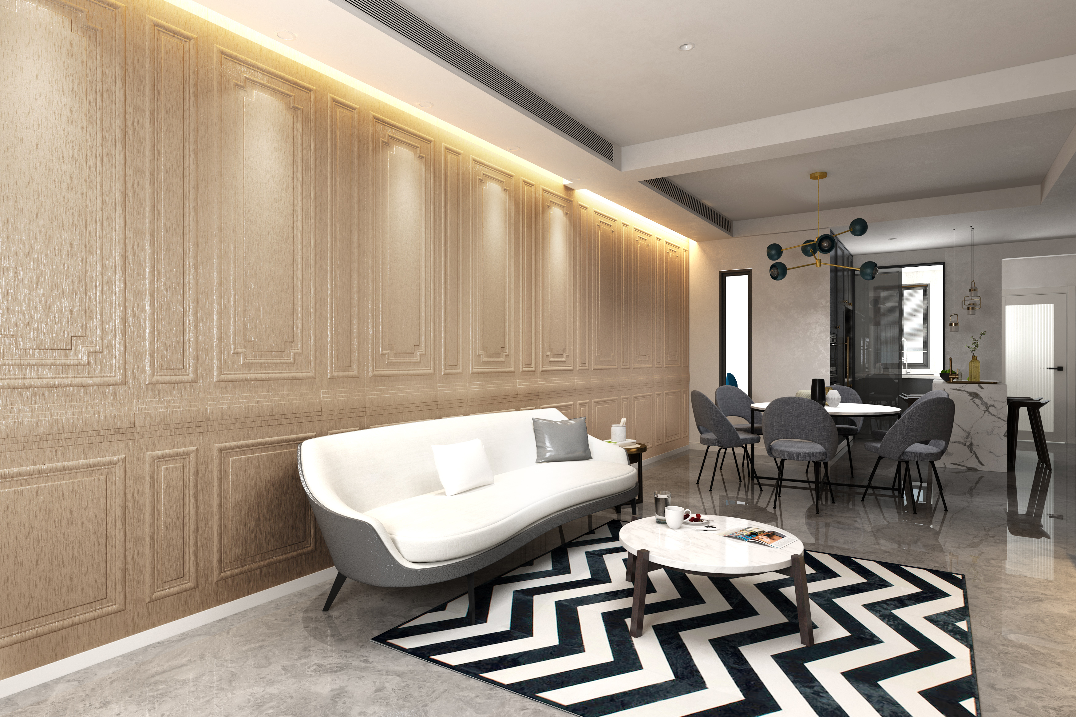 Дизайн Victoria A в бежевых тонах отличается утонченной текстурой и натуральной мягкостью ткани, что придаёт стенам элегантность и комфорт. Панели создают светлый и воздушный фон, который легко сочетается с разными стилями интерьера. Отличное решение для создания деликатных акцентов.